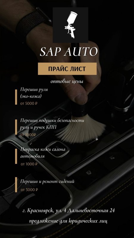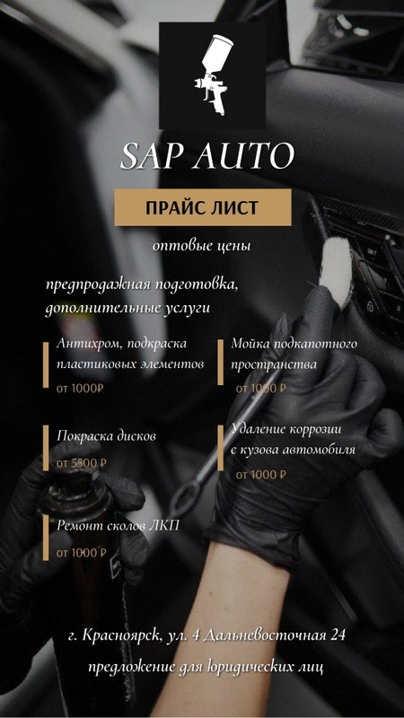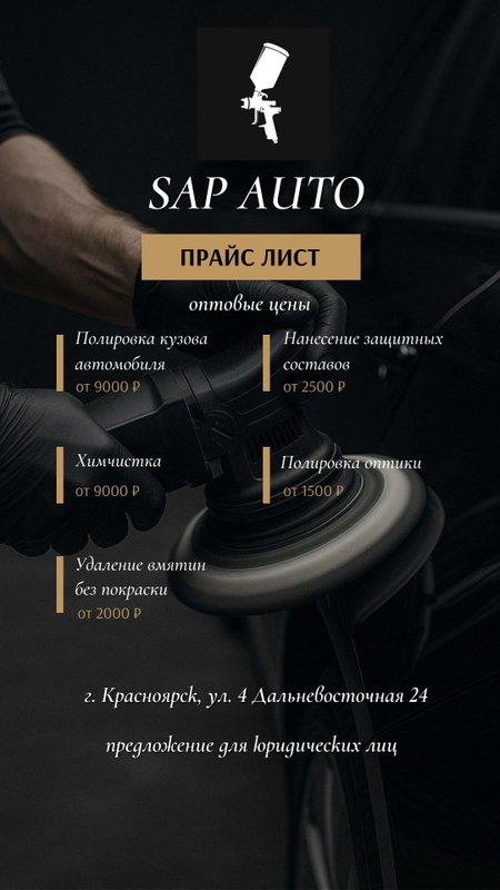 Детейлинг, тюнинг-ателье и студия аквапечати Sap auto приветствует автолюбителей и всех, для кого транспортное средство - неотъемлемая часть жизни! Мы осуществляем несколько видов деятельности: работаем как мойка, автосервис и тюнинг-ателье. Многопрофильность позволяет нам завоевывать постоянных клиентов: услуги автомойки, тюнинг автомобилей - ко всему мы стараемся подходить с одинаково высокими представлениями о качестве, а значит, вы заранее будете знать, чего ожидать от нашего сервиса, и сможете положиться на нас без лишних сомнений!
